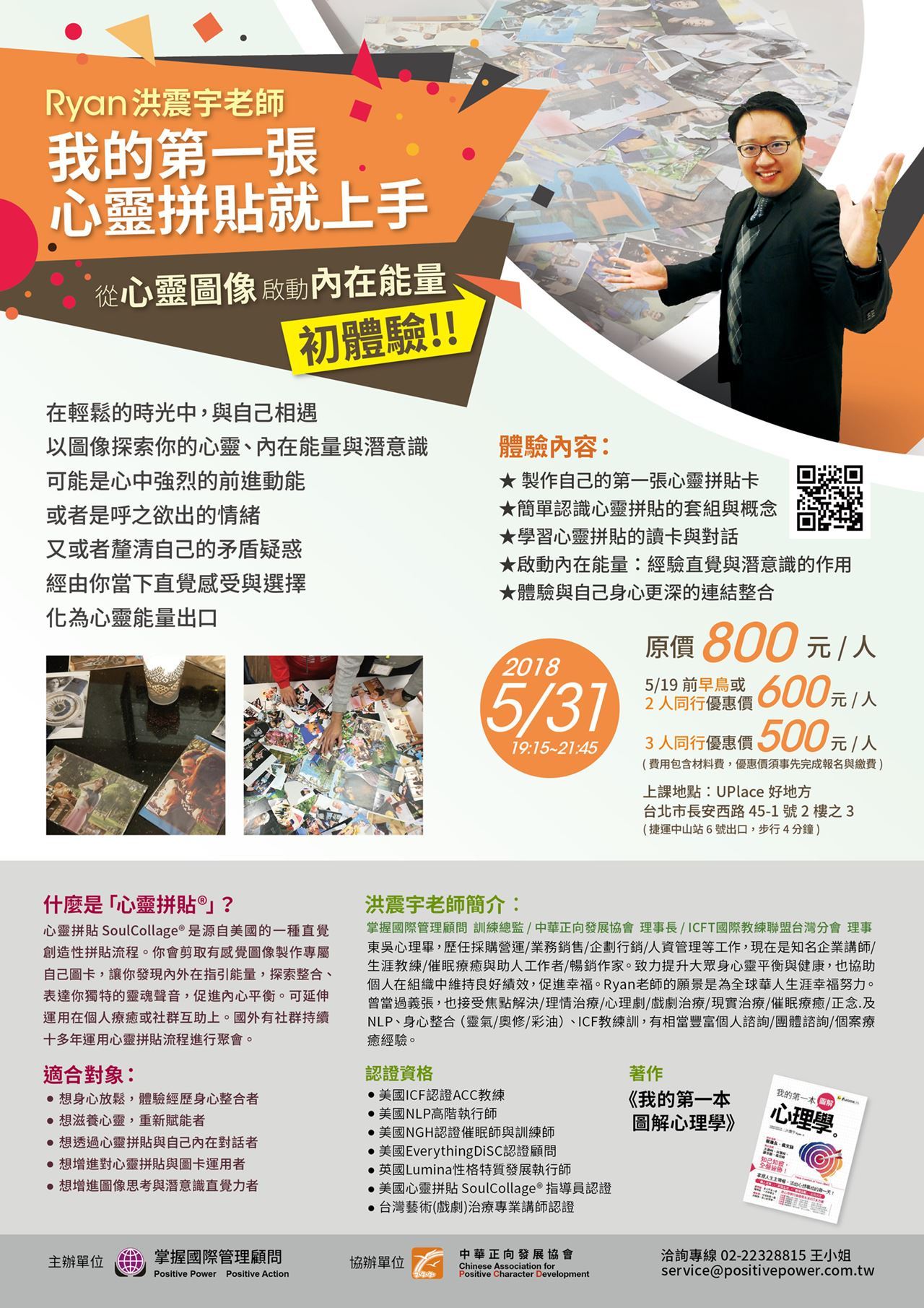 這是心靈拼貼系列課程的“初體驗分享會”,您將可以體驗心靈拼貼運用在與自己對話、和社群分享的感動