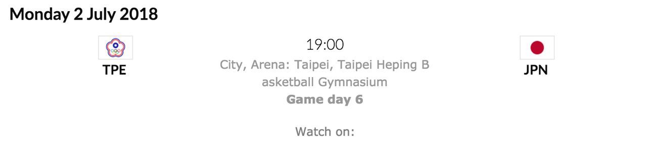 賽事名稱:2019 FIBA 世界盃籃球錦標賽亞洲區資格賽(中華vs.日本)