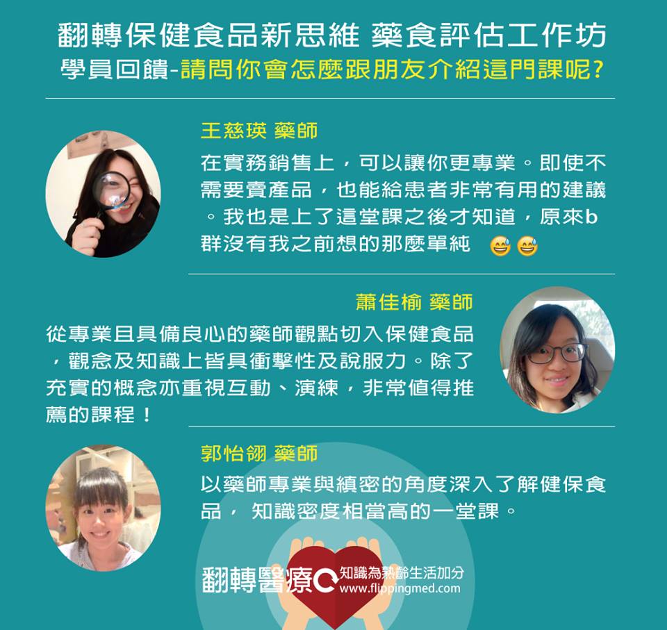 這個課程就是他們實務經驗的分享,建議有藥師兩年以上實務經驗再來參加。如果你還是覺得保健食品沒什麼好學的話,來看看以下問題你懂多少?