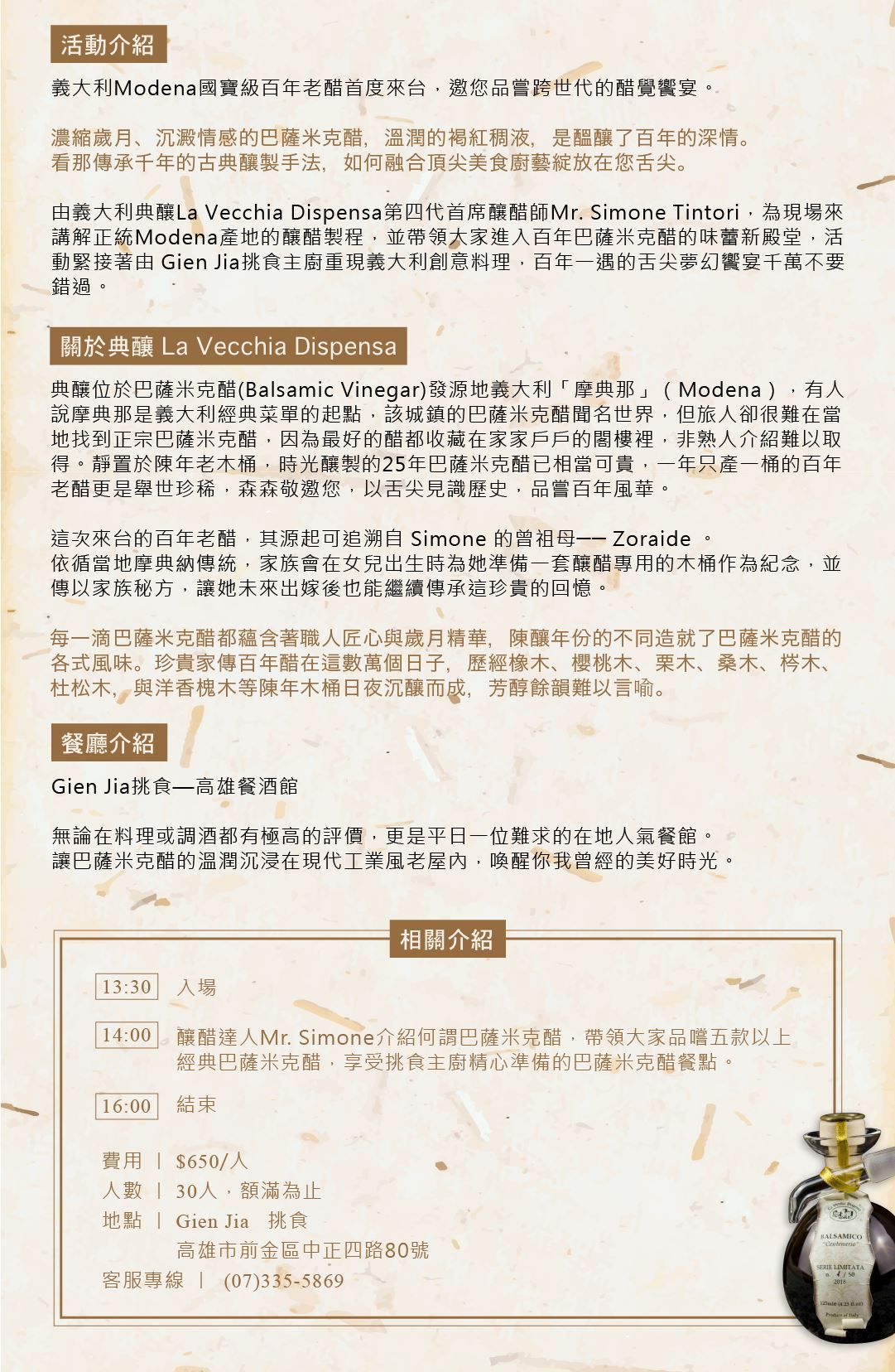百年巴薩米克醋美食饗宴-義大利典釀 in 高雄Gien Jia挑食餐酒館