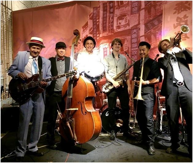 The Flat Fives features Lanny Waugh on guitar & vocals, Ashley Hines on bass, Charles McHale on harmonica & trumpet, Cristina Cox on violin, Josh Schaffer on Tenor Sax AND Mr. Thomas Hu on trombone!