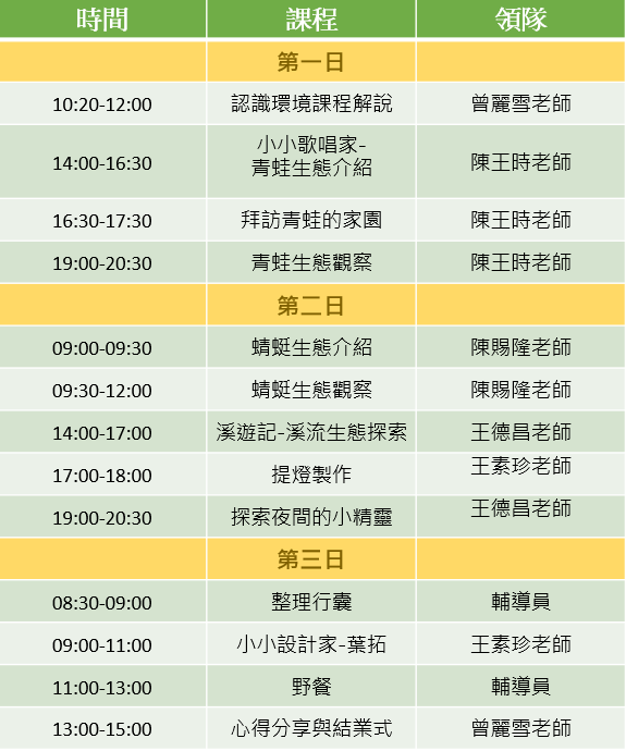 七月暑期開團,限量兩梯次: 7/6-7/8、7/14-7/16