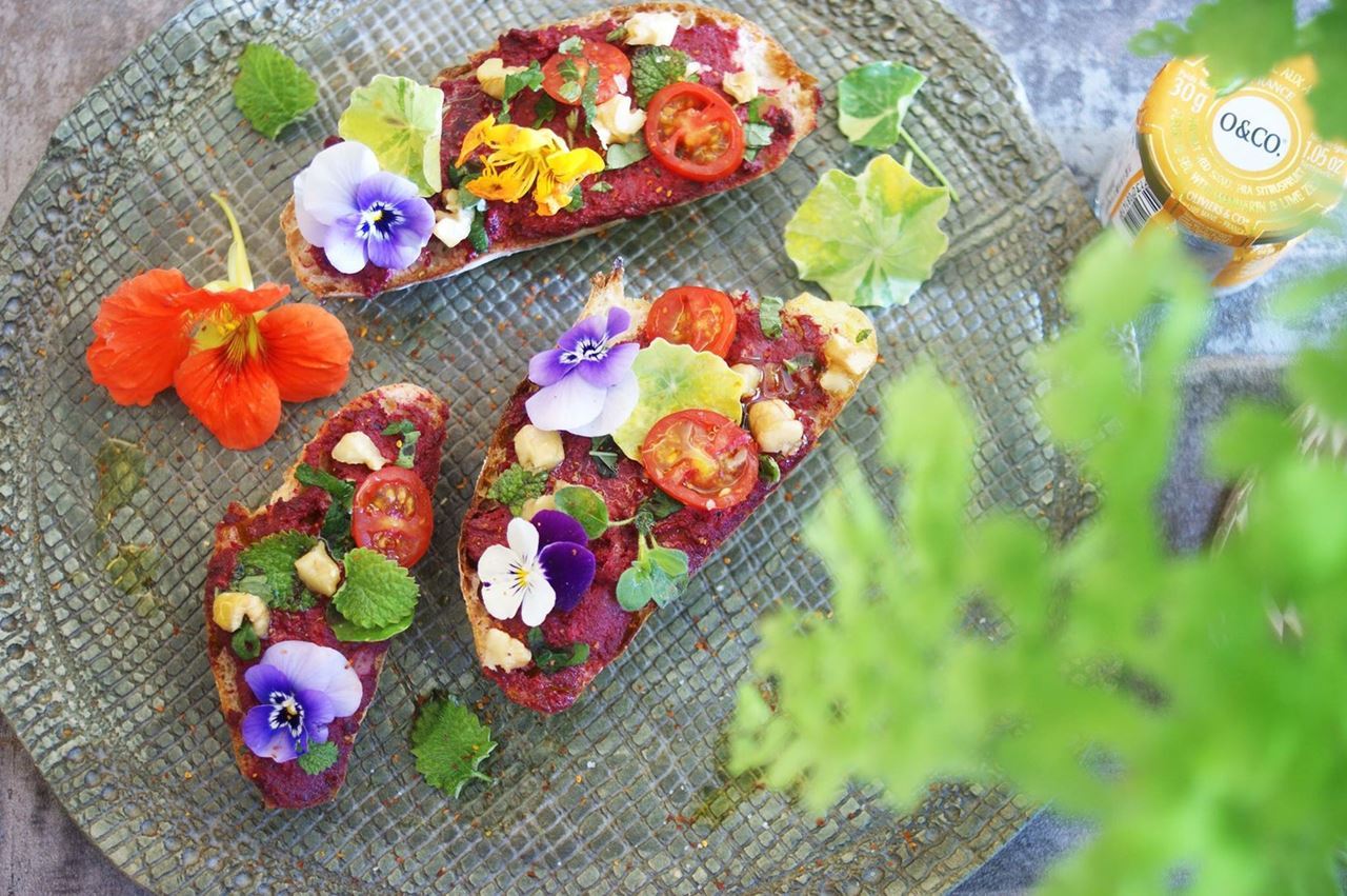 Tsara老師運用O&CO米其林醬料搭配滋養女人身體的甜菜根,調製出健康美味且顏色美麗的抹醬,課程上帶領大家在料理中用大自然的花朵與蔬果創作,成為一道讓自己賞心悅目的餐點!