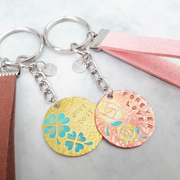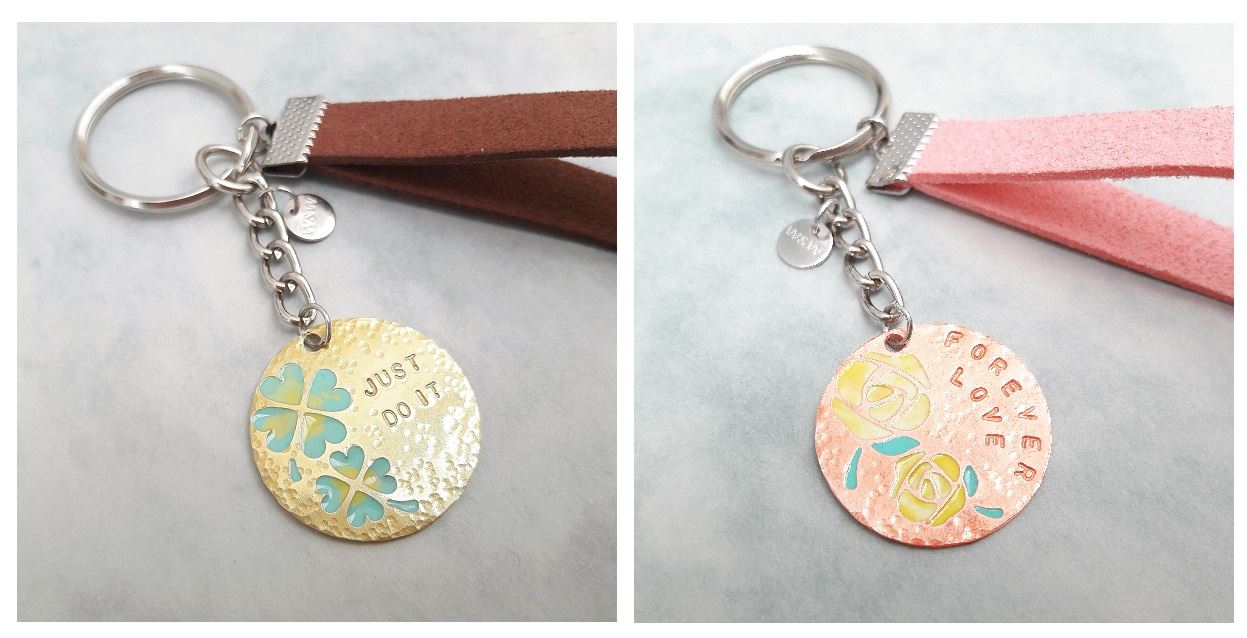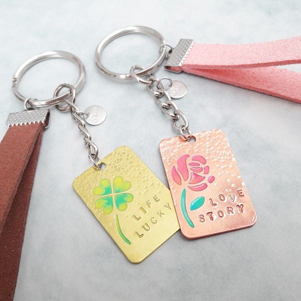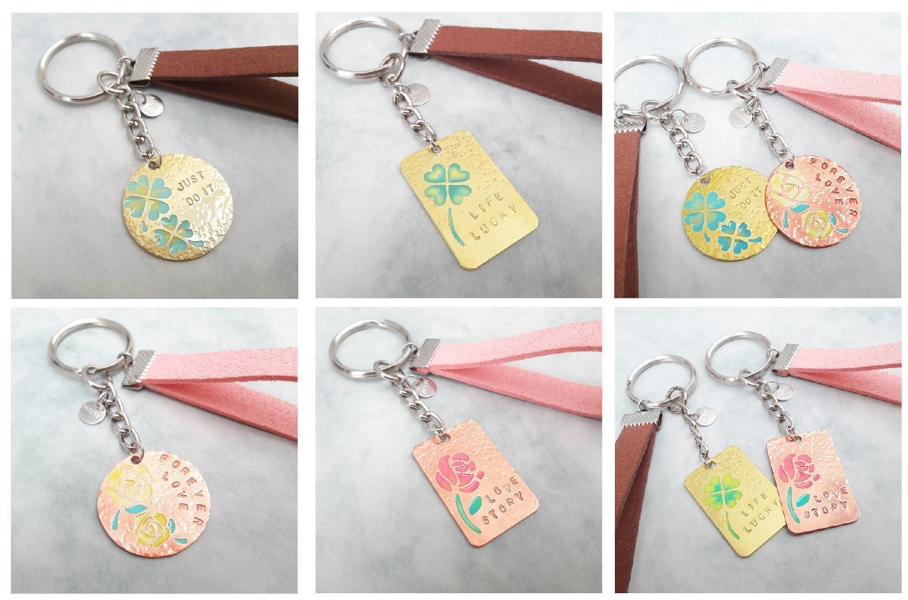 A幸福四葉草 黃銅鑰匙圈、B典雅玫瑰 紅銅鑰匙圈