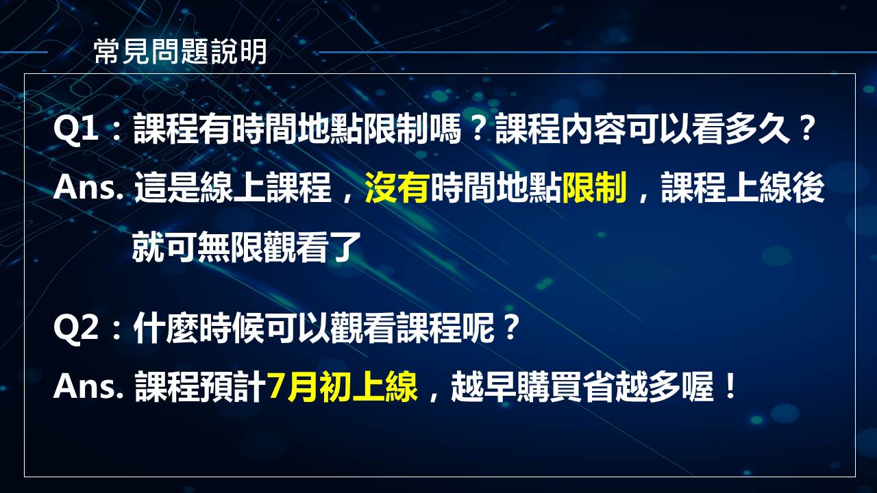 本課程提供MicroPlay輪播軟體,以台指期商品為例讓使用者模擬即時開盤的狀態,使用Python進行資料的取用、分析以及下模擬程式單,體驗真實環境的狀態。藉由這樣的課程訓練,讓使用者快速進入期貨程式交易的領域。