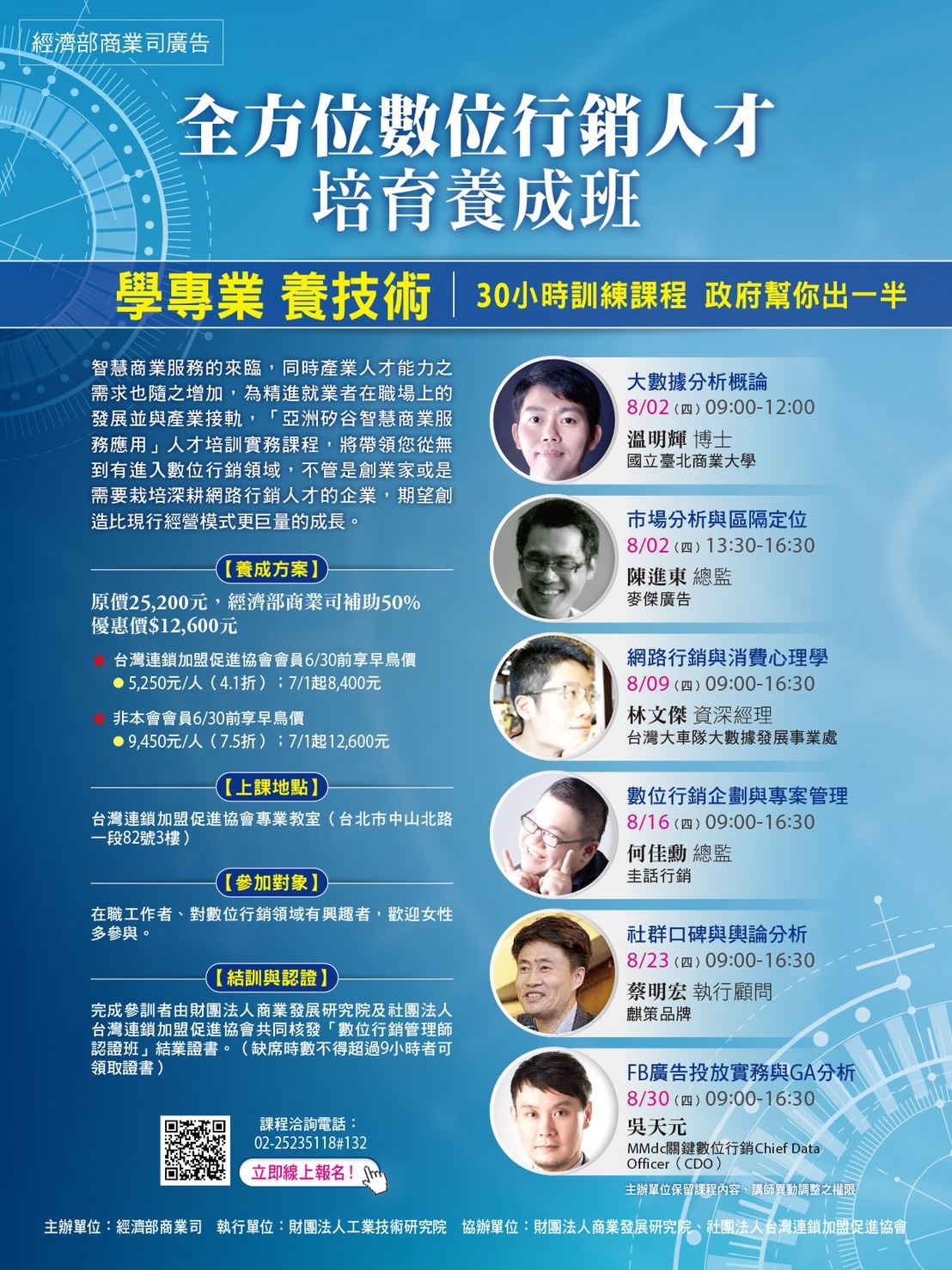 【養成方案 】(原價25,200元,經濟部商業司補助50%,價格$12,600元)