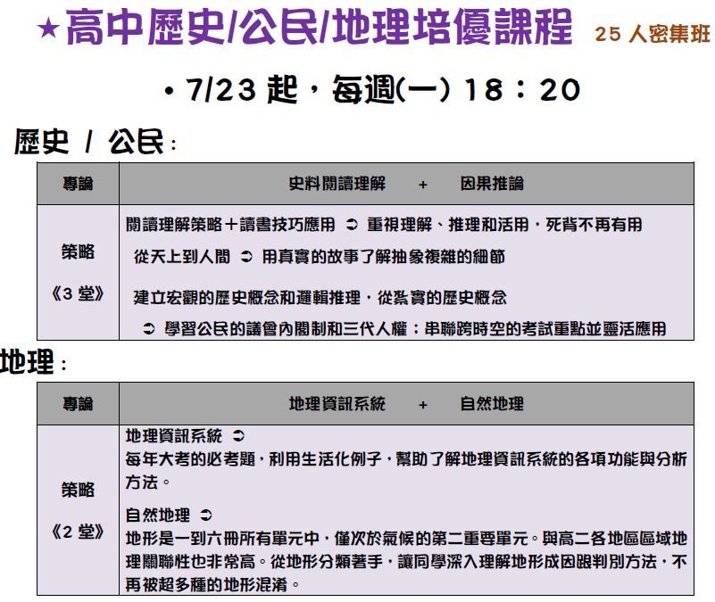 先修自然(生物地科) / 社會(歷地公)培優