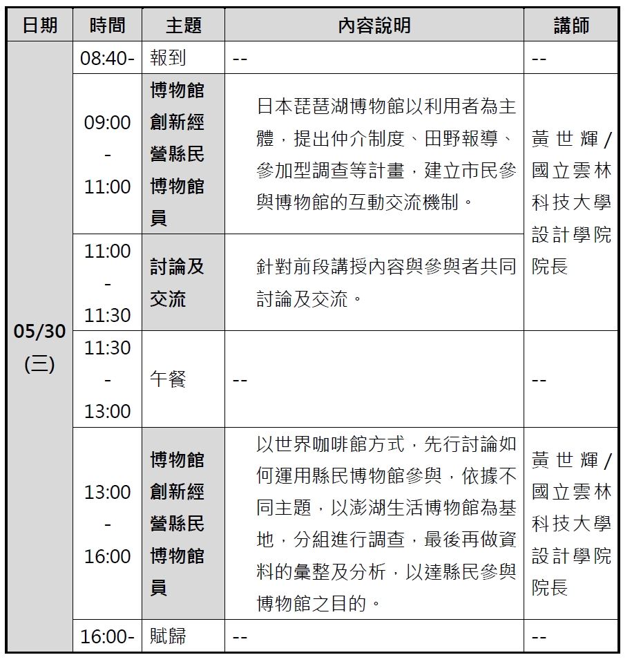 課程表(05/30)星期三