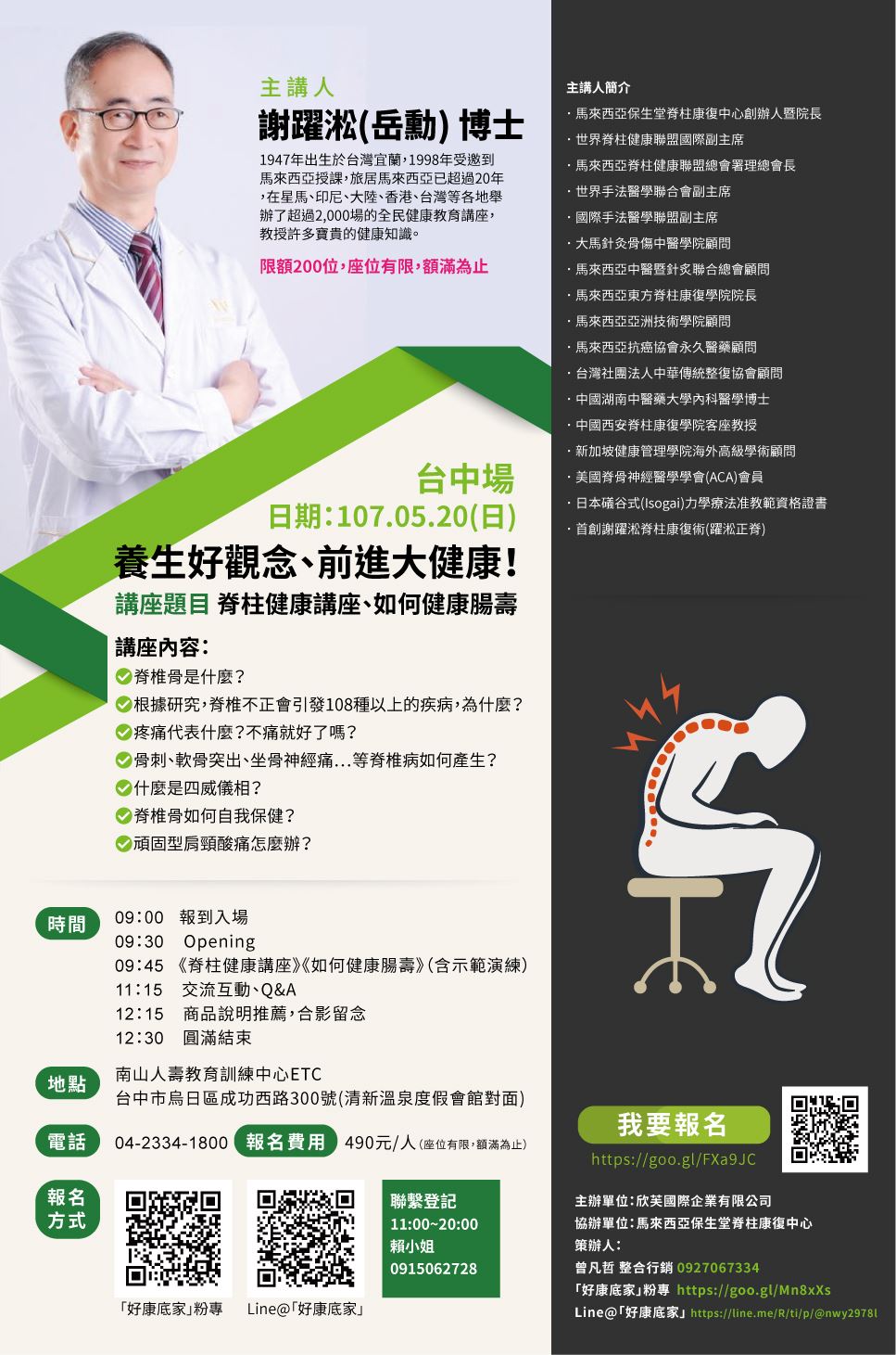 同時,謝博士也結合他的臨床經驗,首創“斷食&脊椎矯正綜合療法及謝氏脊骨神經整合術”。因為這樣的整合,使得治療效果不斷的提升而能更全面的解決患者病痛的問題。