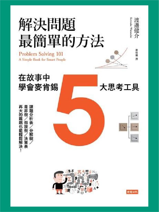誰說問題解決法只有商業菁英才需要?誰說邏輯思考術一定會讓人看得頭昏眼花?最有趣、最親切的麥肯錫思考術在此!不管是要解決生活中的大小問題、達成目標、實現夢想,都需要相同的步驟:理解現狀、鎖定原因、決定解決方案、執行。所謂解決問題,簡單地說就是「正確地理解現狀」,「找出問題產生的原因」,「徹底思考有效的解決方案」,然後「執行」。一個問題不管看起來多龐大、多複雜,都可以分解成幾個小問題,並能靠自己解決問題!世界頂尖顧問公司──麥肯錫證實最有效的問題解決工具與思考方法,本書利用生動有趣的故事、深入淺出的解說,帶你一步步養成未來生存不可或缺的能力!