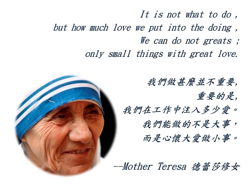 秉持著德雷莎修女的精神,孫總監:「帶著愛心做小事,每一件事都是大事。」