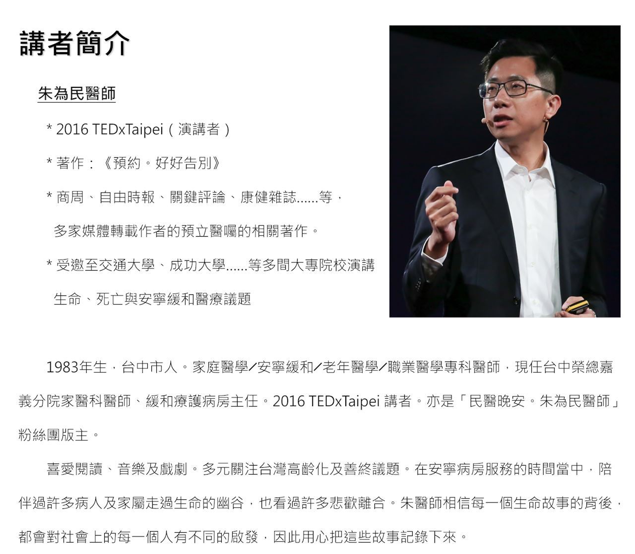 這次公益講座,我們邀請到安寧緩和專科醫師朱為民先生