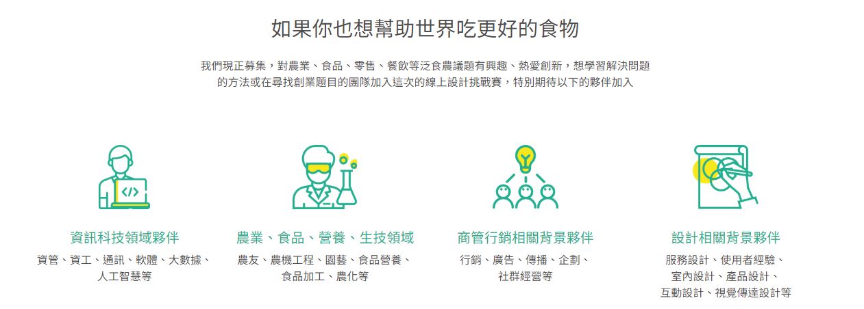 共同解決未來飲食與農業的四大挑戰,歡迎你與志同道合夥伴,一同挑戰!