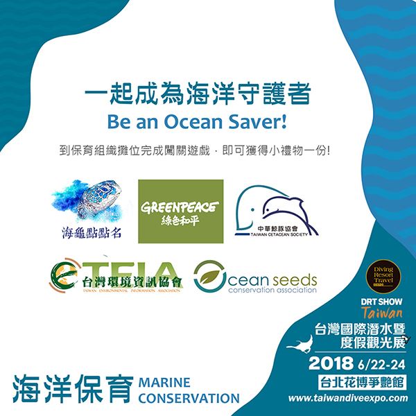「Be an Ocean Saver一起成為海洋守護者!」保育闖關遊戲,讓你學習海洋保育、認識海洋資源與生態,完成闖關即可獲得精美禮品一份,老少咸宜,歡迎全家大小一起來!