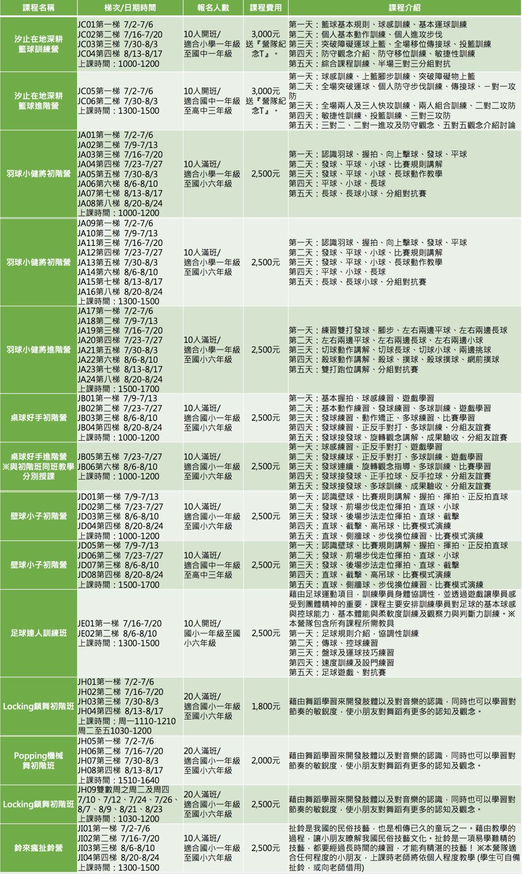 新北市汐止國民運動中心,兒童夏令營來囉!