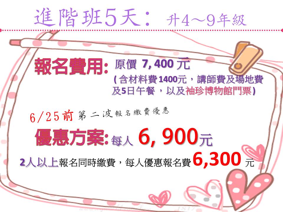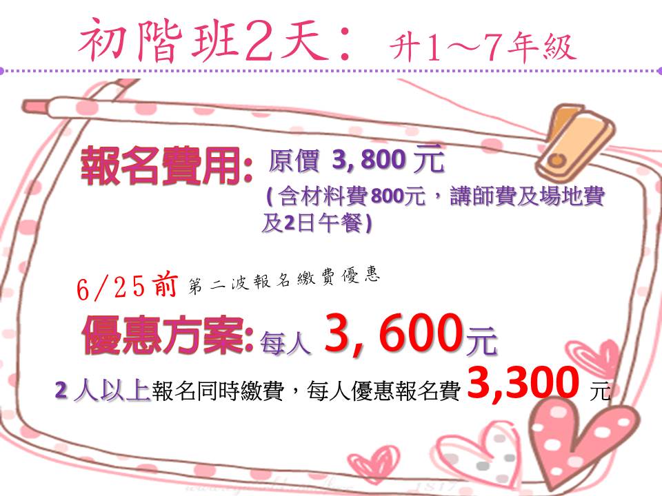 初階班:升1~7年級,2天