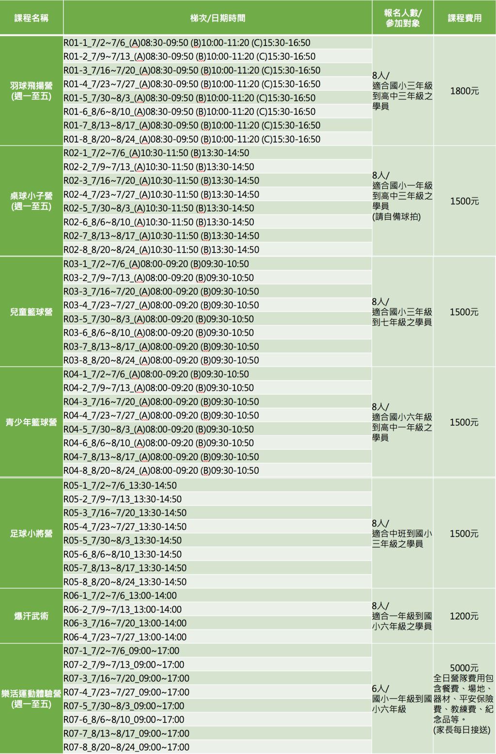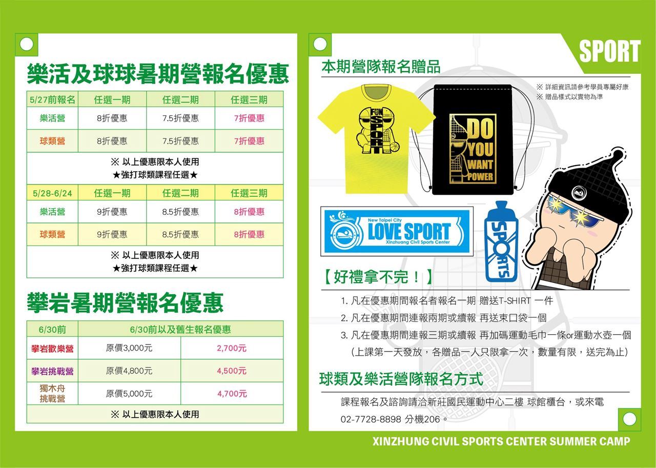 💡樂活暑期營&球球暑期營請至新莊國民運動中心二樓球館櫃台洽詢,