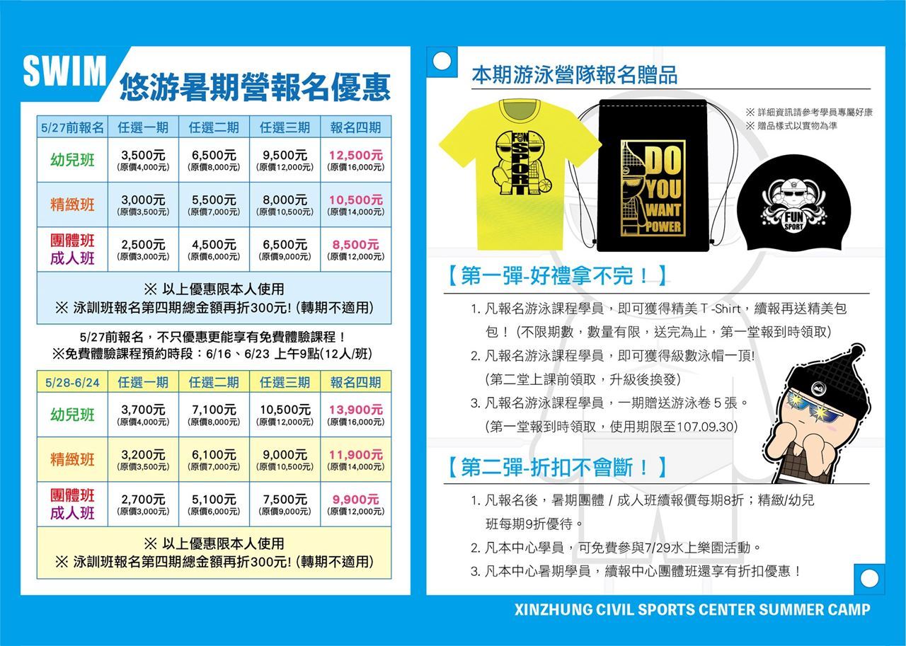 悠游暑期營則請至一樓游泳館櫃檯,或電洽02-7728-8898。