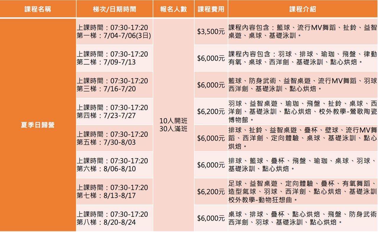 *單項營隊混搭日歸營隊,優惠折數以單項營隊優惠方式計。