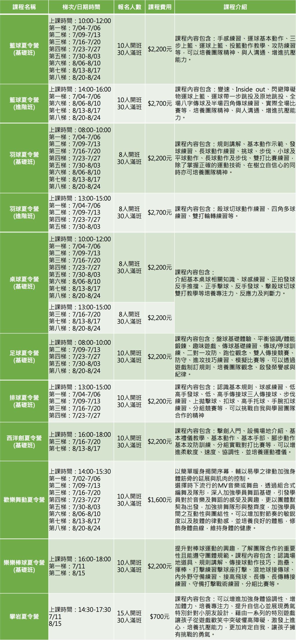 🌟單項運動營隊