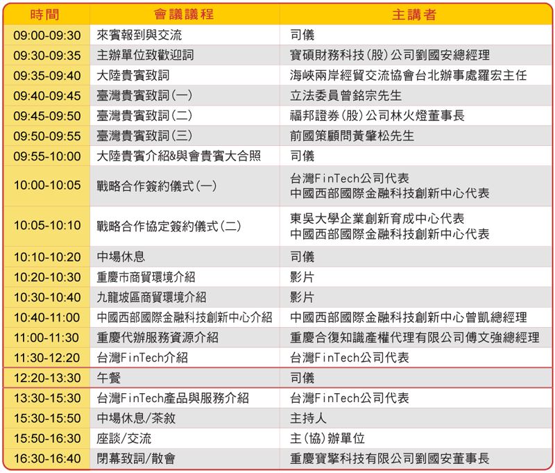 協辦單位:重慶寶擎科技有限公司、重慶分特克企業孵化器有限公司、臺北國際金融資訊協會、寶碩財務科技股份有限公司