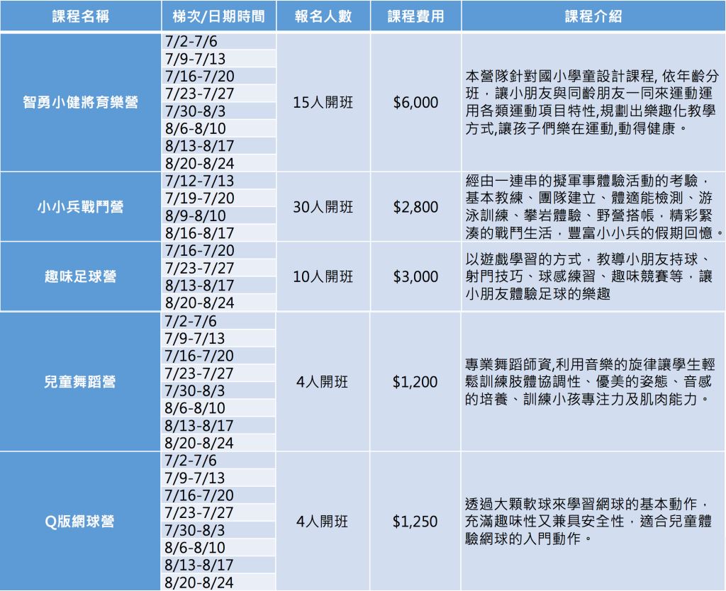 智勇小健將育樂營:單人報名2梯享優惠價11,000元;單人報名4梯享優惠價20,000元