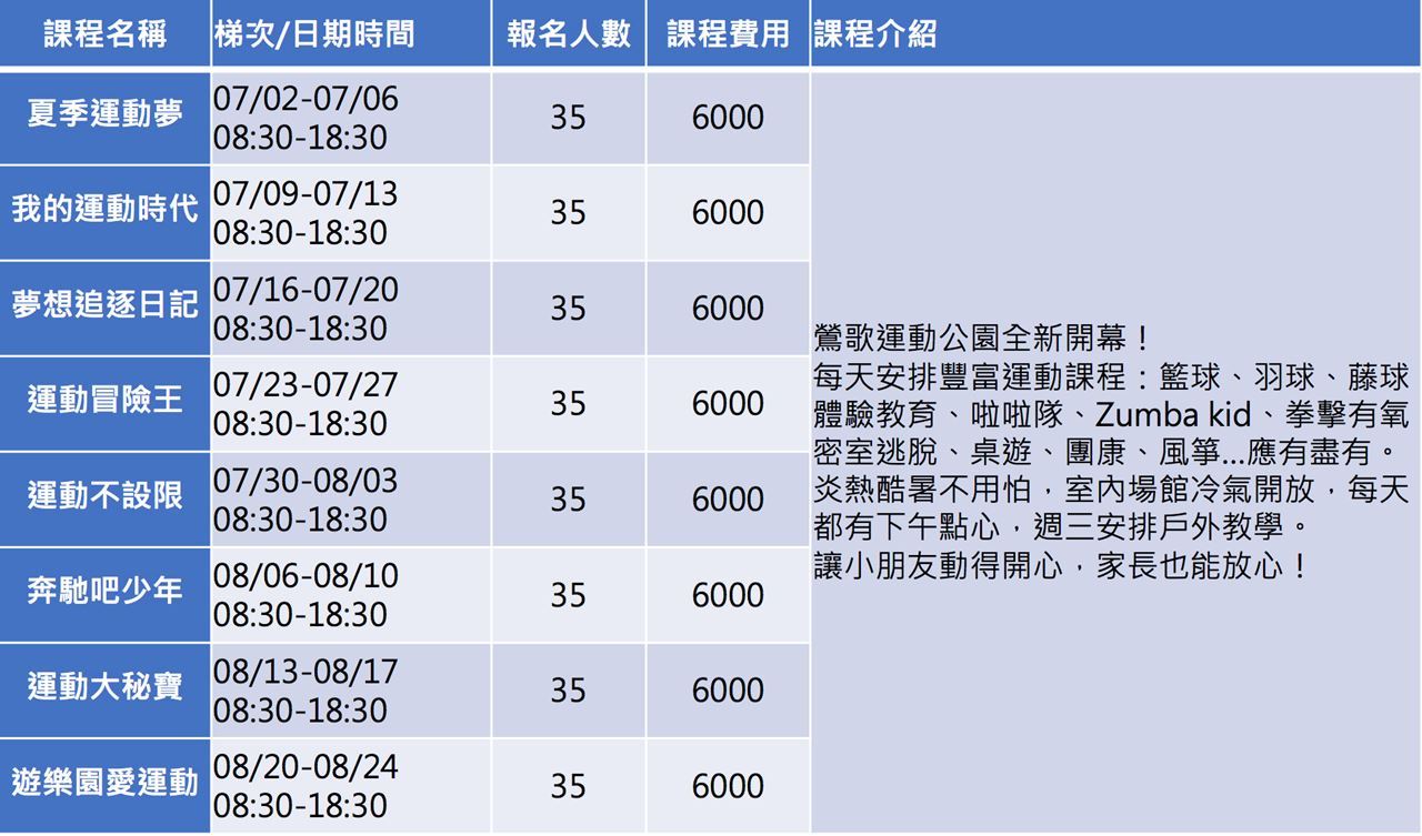 新北市鶯歌運動公園,歡樂夏令營來囉!