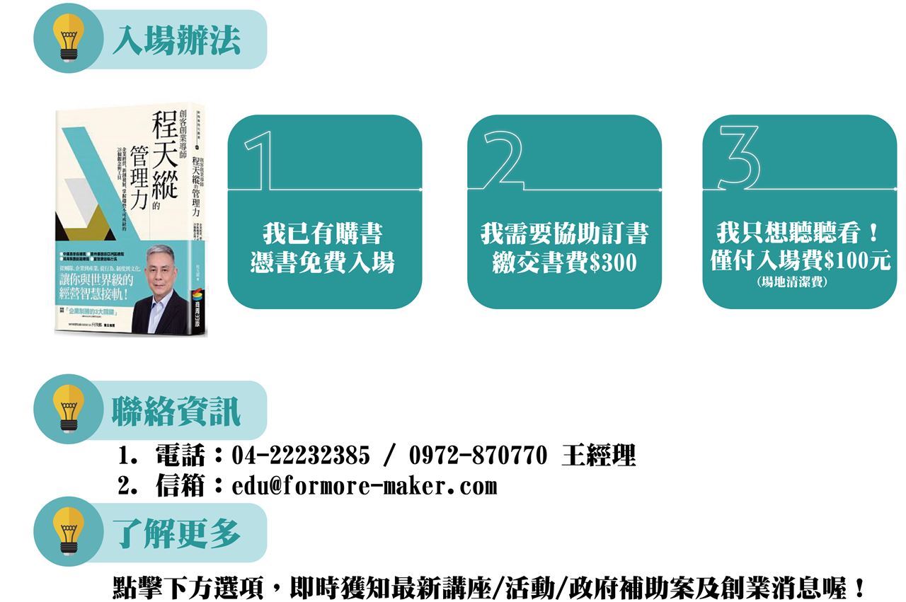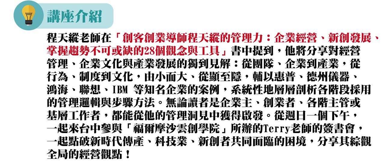 7/1 創業導師程天縱簽書會「創業團隊如何與世界級的經營智慧接軌!」
