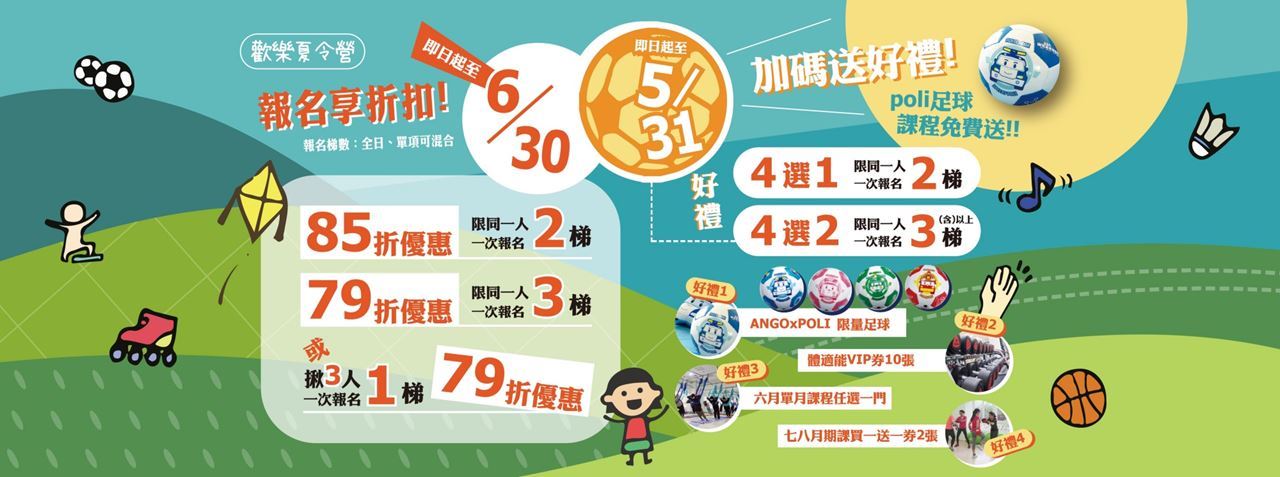 ⚽活動地點:新北市12座國民運動中心及運動公園,全新北都是孩子的運動場