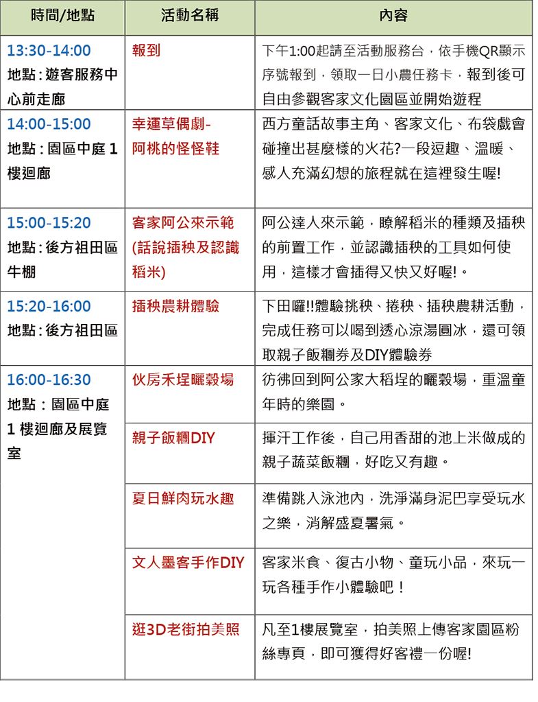 5.因農事體驗場地所能夠容納的人數有限,為確保活動品質,於現場場域作人數流量控管,如造成不便敬請見諒。