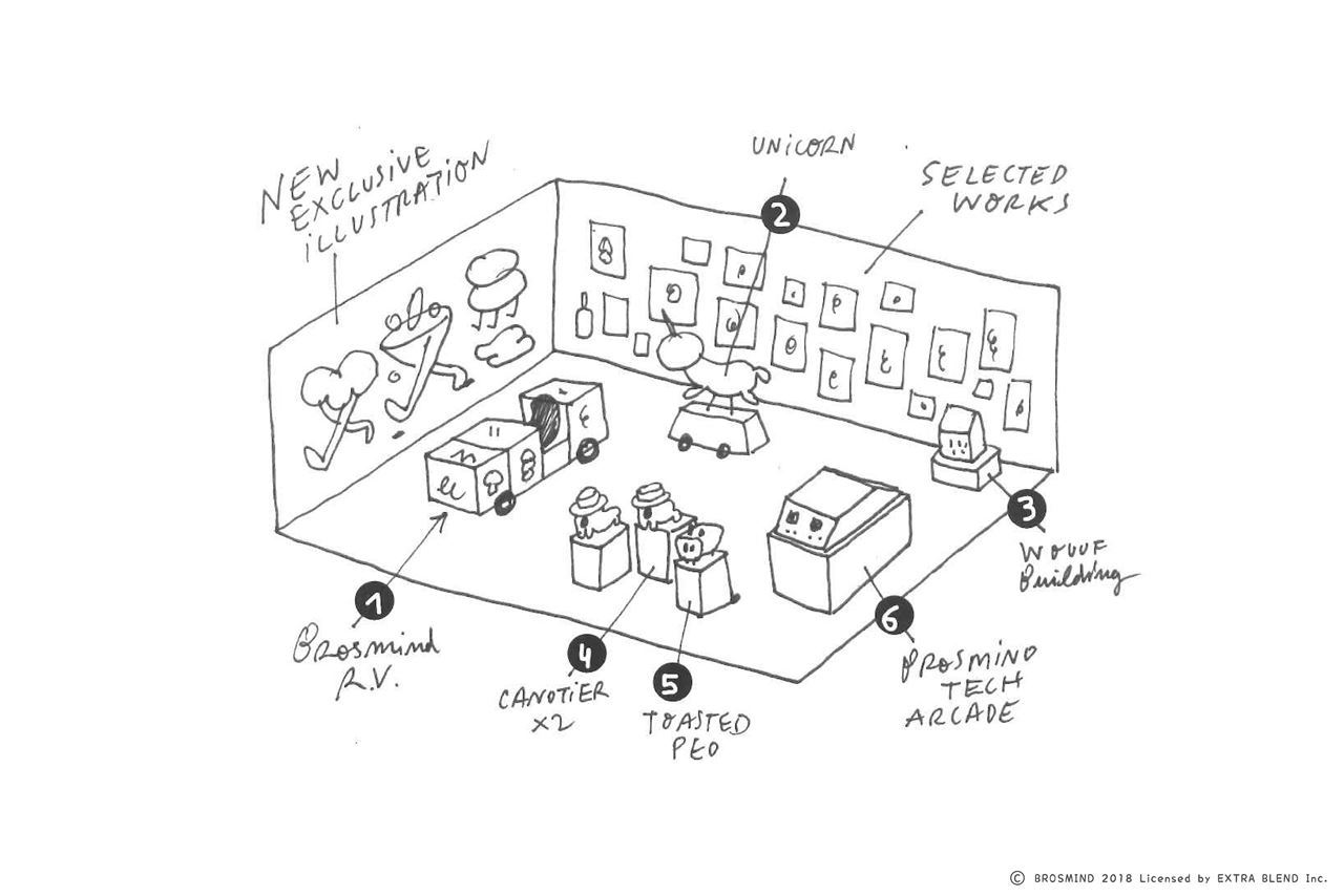 BROSMIND 這對設計頑童兄弟來到台灣,會引爆什麼火花?搞出什麼花樣?騎著Boom Boom Car 穿梭展覽空間;領取展覽限定貼紙,與藝術家共同完成創作;或者在超巨型系列畫作前,發掘 BROSMIND 埋藏的絕妙巧思與細節……還有超過 200 件西班牙直送來台原畫手稿與創作原型、工作室原景重現,不僅要引領潮流+怪趣品味,更將碰撞設計、文化與創意能量,等待設計粉朝聖、一探究竟