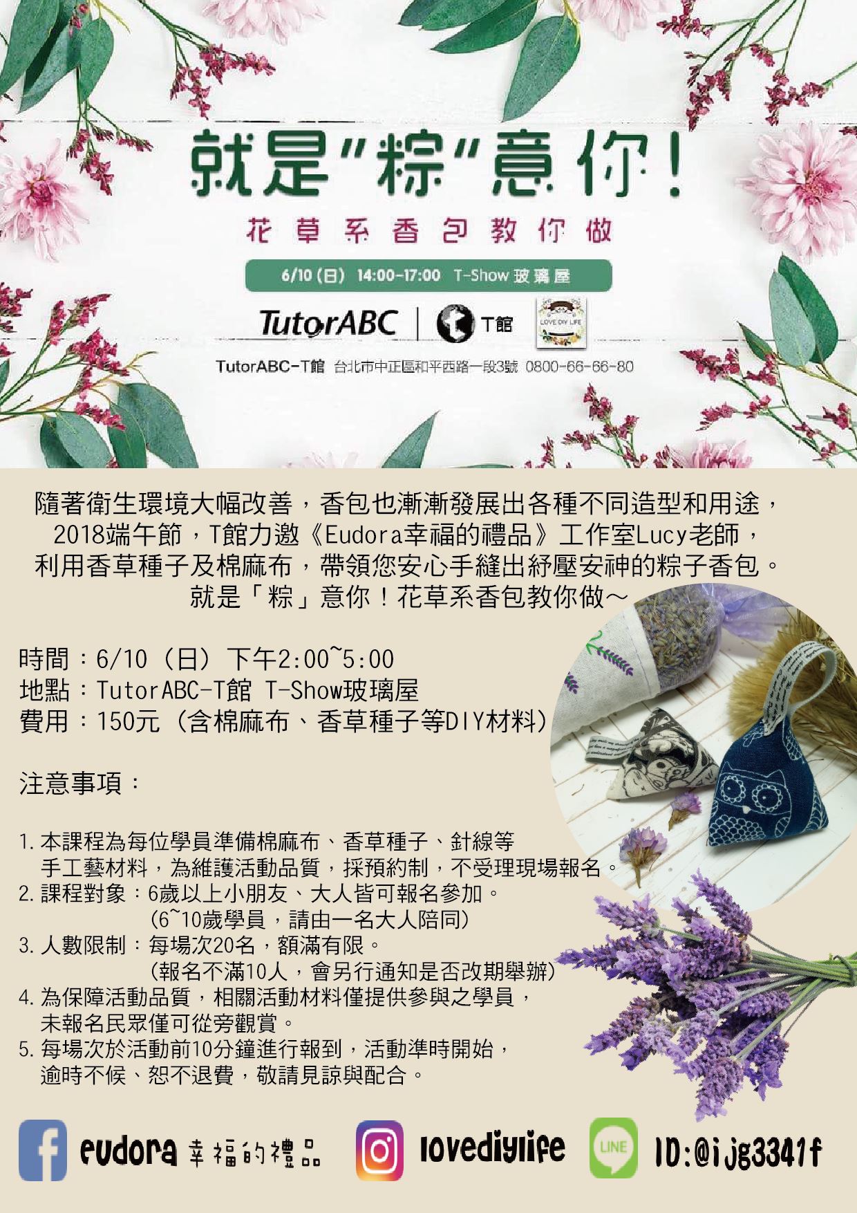 LOVE DIY LIFE六月手作教室-就是粽意你~薰衣草香包DIY
