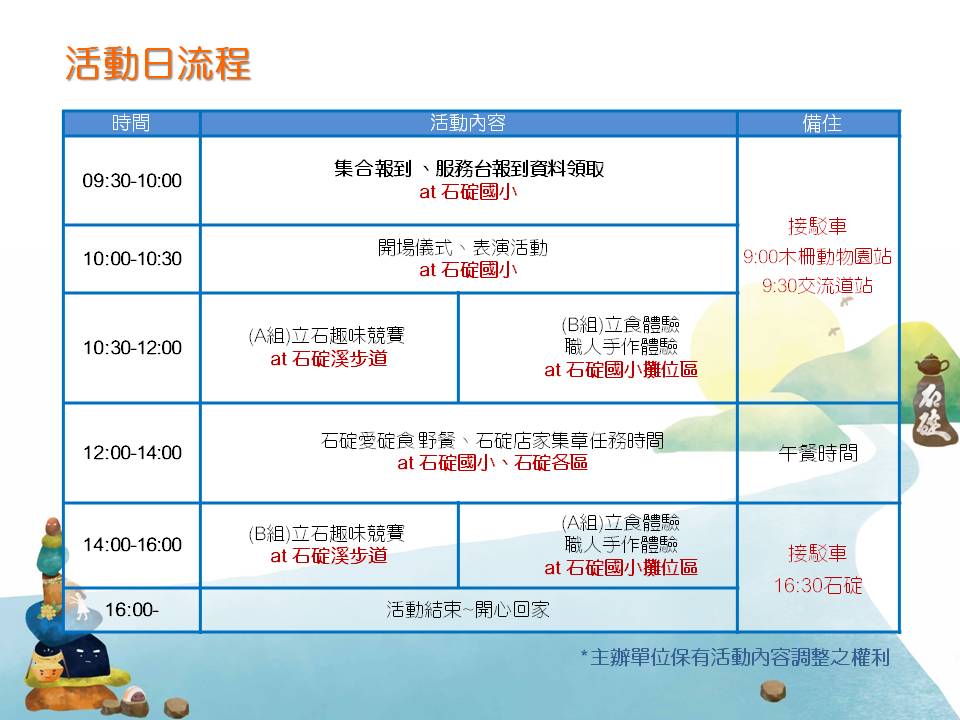 - 本活動將準備雨天備案,雨天可照常舉辦。