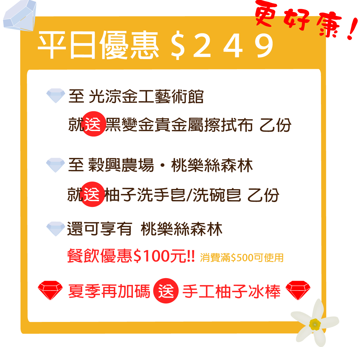 ※加碼再送【 桃樂絲森林平日餐飲優惠券$100】[每次消費滿$500(含)可使用]