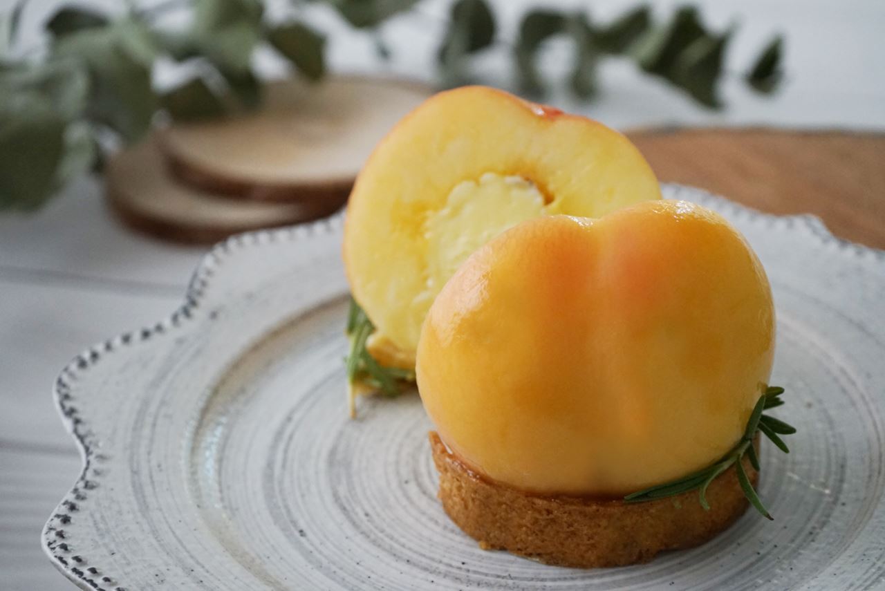 嚴選整顆拉拉山水蜜桃,包覆著濃郁卡士達醬及手工杏仁塔皮,不論視覺還是味覺通通超啾西!!