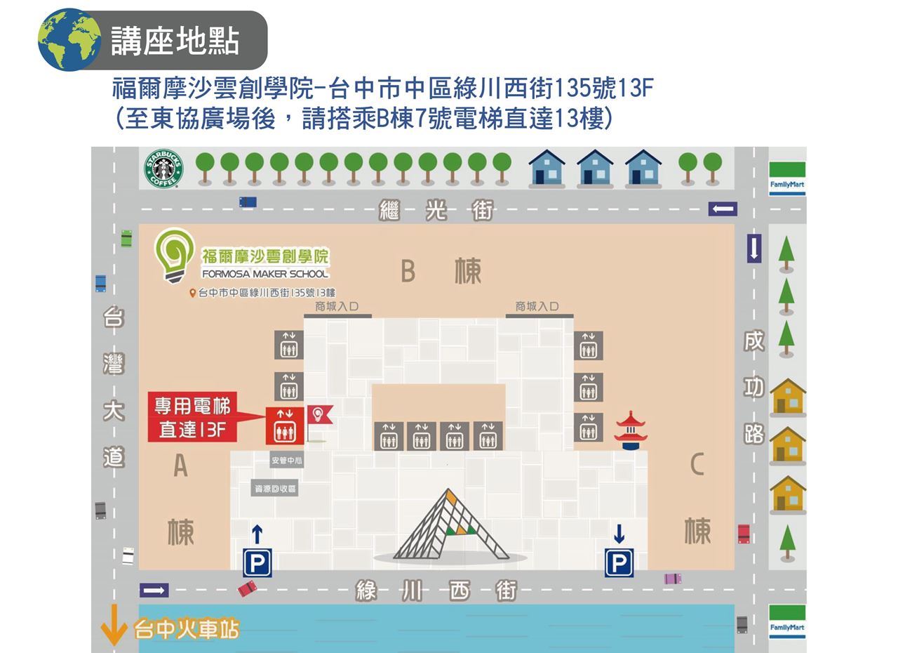 福爾摩沙雲創學院-請搭乘B棟7號電梯直達13樓