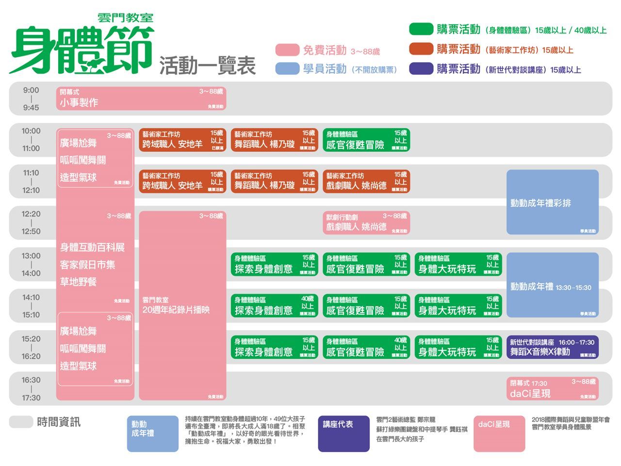 每一個人,都能在雲門教室20週年推出的「身體節」一日活動裡,透過「體驗 x 展覽 x 工作坊 x 講座」的多元型式,喚醒躲藏在身體裡的「生活5力」。