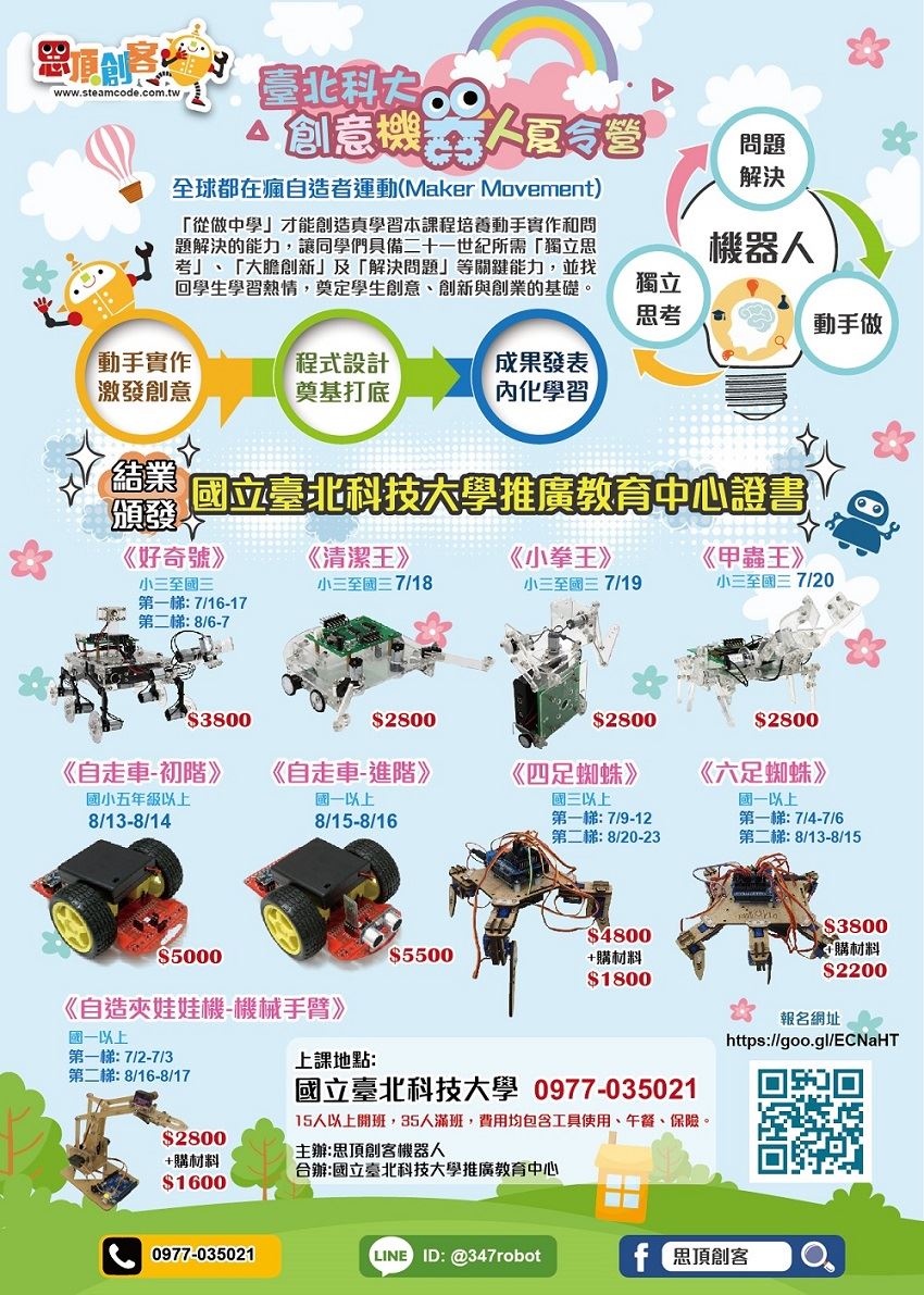 【北科大證書】機器人&程式設計夏令營 @臺北科大推廣教育中心