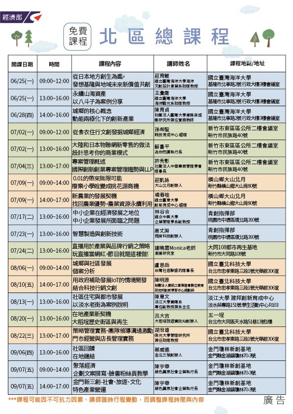 基隆國立海洋大學/新竹東門區區公所/新竹橫山大山北月/桃園青創指揮部/大同108都市再生基地/國立臺北科技大學/淡江大學/大稻埕五一埕/金門瓊林創新基地