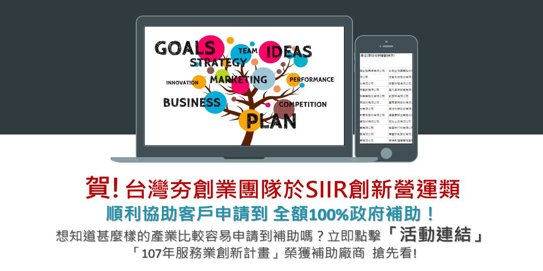 107年服務業創新計畫 榮獲補助廠商名單: 請立即點擊 活動連結