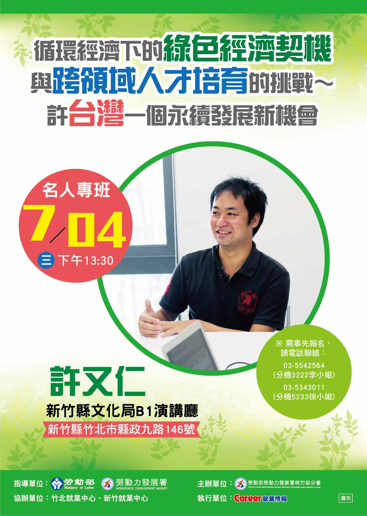 循環經濟下的綠色經濟契機與跨領域人才培育的挑戰~許台灣一個永續發展新機會