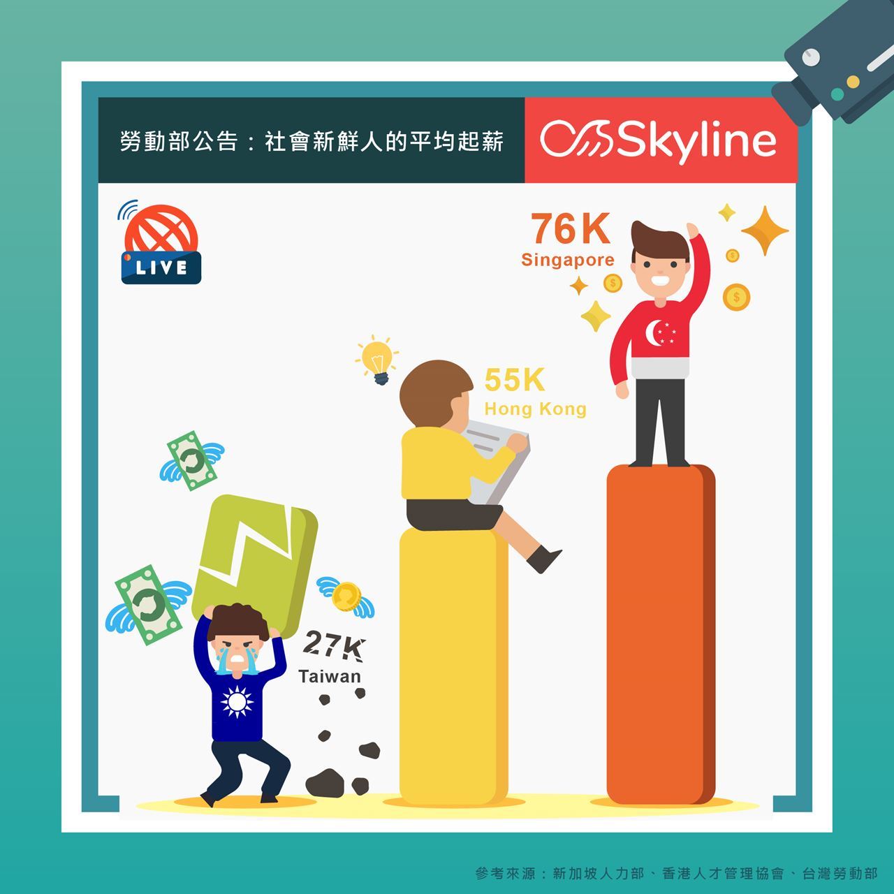 根據新加坡人力部統計,2017年新加坡大學應屆畢業生平均薪資『76k』,同年台灣勞動部統計處公布初入職場新鮮人平均起薪『27K』....