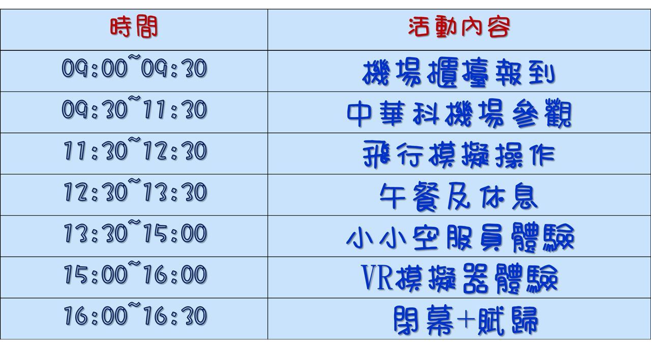 招生對象:全國國中小(5年級以上)對航空有興趣同學。