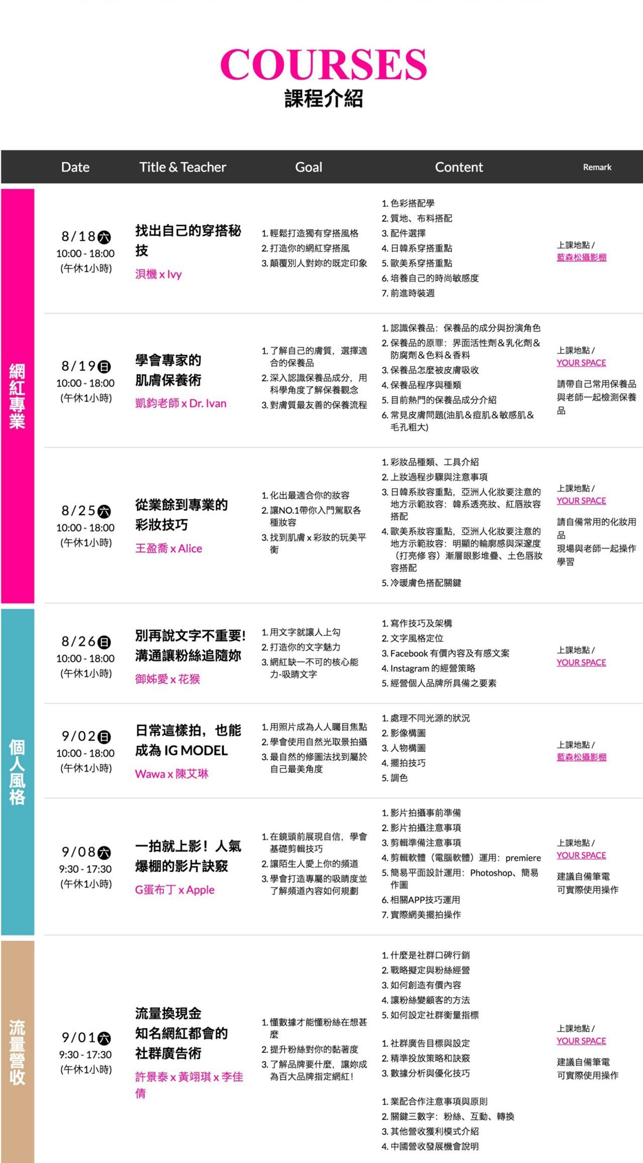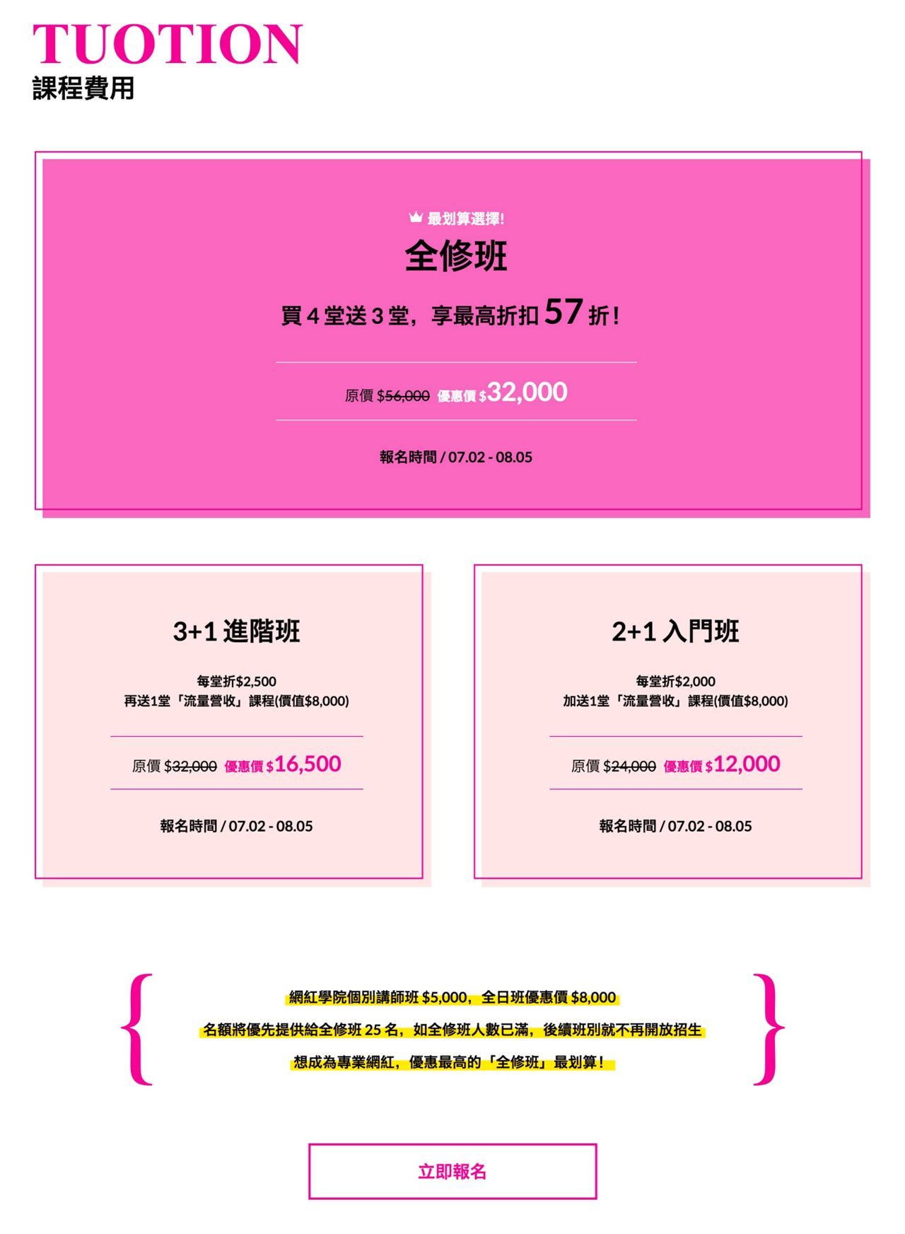 ※ 報名後如遇當堂人數已滿,將另行通知選擇其他課程或換報名班別。