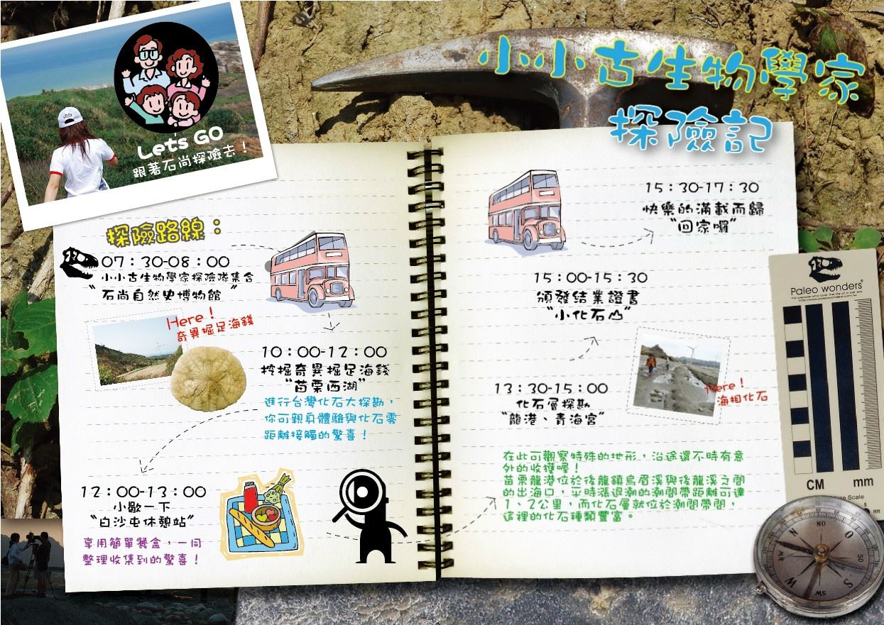 「石尚企業」為亞洲少數具備古生物標本清修專業能力的公司。在成立20餘年後,將累積了上萬件的珍貴館藏、稀有的古生物原件、台灣團隊研究成果,成立北台灣首座私人的自然史博物館。「石尚自然史博物館」為了增進大眾對於地球歷史及古生物了解,特別規劃〔石尚2018暑期古生物營-小小古生物學家探險記〕戶外課程,讓大朋友、小朋友一起身歷其境,體驗找化石的樂趣。期待藉由此活動,培養與提升兒童、青少年及一般民眾的科普教育知識,進一步推進對科普學習產生熱忱。苗栗西湖、後龍、通霄、竹南和苑裡一帶,是苗栗頭嵙山層化石最豐富的地區,尤其苗栗這一帶的貝類和海膽的化石特別多,其中海膽類又以奇異掘海錢這種沙錢海膽數量最為龐大。石尚2018暑期古生物營-小小古生物學家探險記【Let's go 挖化石囉】,將邀請古生物研究達人王嘉祥老師,帶領大家一起走訪化石的祕密花園,翻開層層堆疊的土壤,親手挖掘出埋藏百萬年前的化石。用完中餐後,將會繼續前往龍港海岸,這裡除了有各種貝類化石外,還有大型的五孔沙錢海膽和心型的拉文海膽,是這裡的化石中最吸引人注意的種類喔!同時潮間帶中的各種現生生物也是野外觀察的目標,如海葵、招潮蟹、沙蟲、貝類等等。經過這一整天的探險,你也是一位小小古生物學家唷。活動日期|7月28日(六)上午7:30至下午5:30(含車程)活動地點|苗栗西湖/ 龍港、青海宮集合地點及時間|上午7:30前至石尚自然史博物館1樓集合〔新北市土城區中華路2段212號〕活動對象|不限,〔5-8歲之兒童,須由一位家長陪同〕活動費用|1,990元/ 人,包含遊覽車資、午餐、保險費及工具用品〔耙子、塑膠袋、塑膠手套、棉手套〕帶隊師資|古生物研究達人/ 石尚團隊自備物品|個人藥品(暈車藥、防蚊液)、滾筒衛生紙、地質鎚(或一字螺絲起子、家用鐵鎚)、輕便雨衣當日穿著|請穿著長袖長褲、帽子、背包、球鞋、雨鞋、更換衣服活動行程|活動花絮|其他說明|1.如有任何報名相關問題,歡迎來電02-22685066分機306陳's <週一至週五10:00~17:00>2.因本大樓停車位不足,敬請搭乘大眾交通工具或可透過新北市公共停車場資訊查詢附近之停車場,網址 http://www.parkinginfo.ntpc.gov.tw/parkinginfo/pub...3.因本活動是委託Accupass退款,如有不可抗拒之故或天候影響,辦理退款說明請查閱網址: http://support.accupass.com/knowledgebase/articles...石尚相關資訊: ●石尚官網 http://www.shishang.com.tw●石尚探索屋粉絲團 https://goo.gl/ekF2We●HANSA石尚粉絲團 https://goo.gl/yMfMYo※主辦單位遇人力不可抗拒之因素,保有隨時修改、暫停或終止本活動之權利,本活動一切更動將於本活動網站及粉絲 團公告;任何因人力不可抗拒因素產生之異動時,主辦單位將於活動前以E-MAIL及簡訊方式通知報名者。