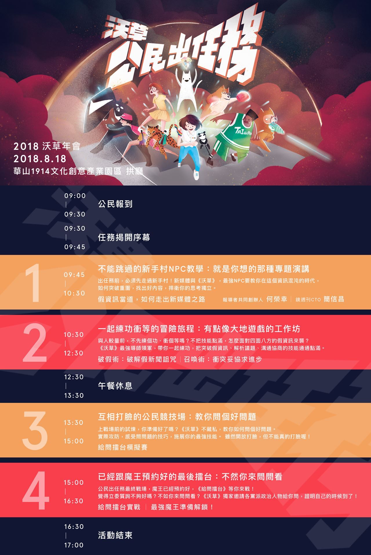2018暑假,沃草《公民出任務》將由沃草《國會無雙》、《公民學院》聯手聚集新媒體與人社科普團體,告訴大家在這個資訊混沌時代,如何找出好內容,並獨家傳授破解假資訊、解構時事議題的祕技,讓你不被風向帶著走。沃草《給問擂台》更邀請到各黨派政治人物,讓你直接挑戰問政,實踐直接民權!