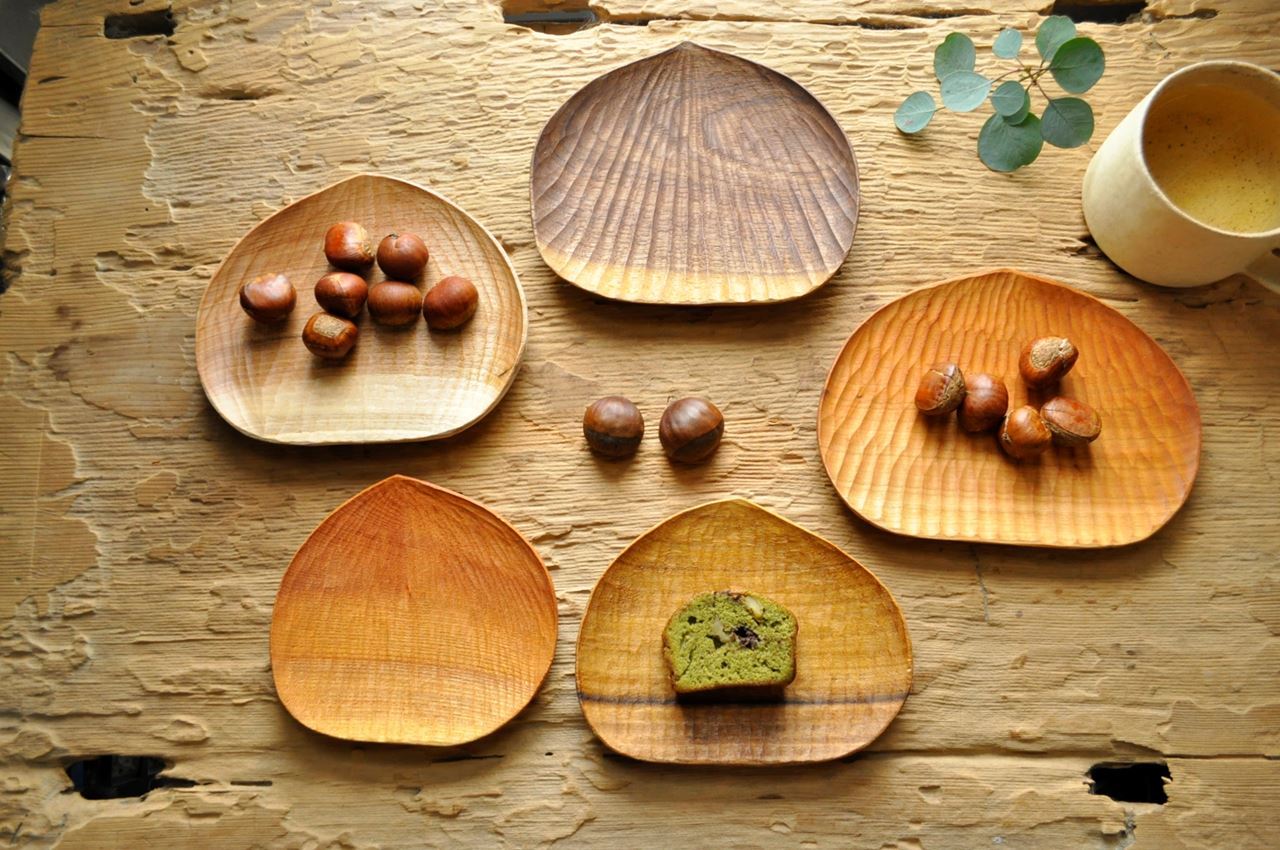 以胡桃木/櫻桃木/柚木…等等木色繽紛的木材,取其本身雙色部位,製作成可愛實用的手雕栗子盤,並搭配許多手工雕刻的技巧,讓作品更顯現手工製作的細緻感受。