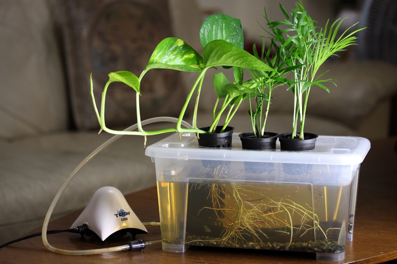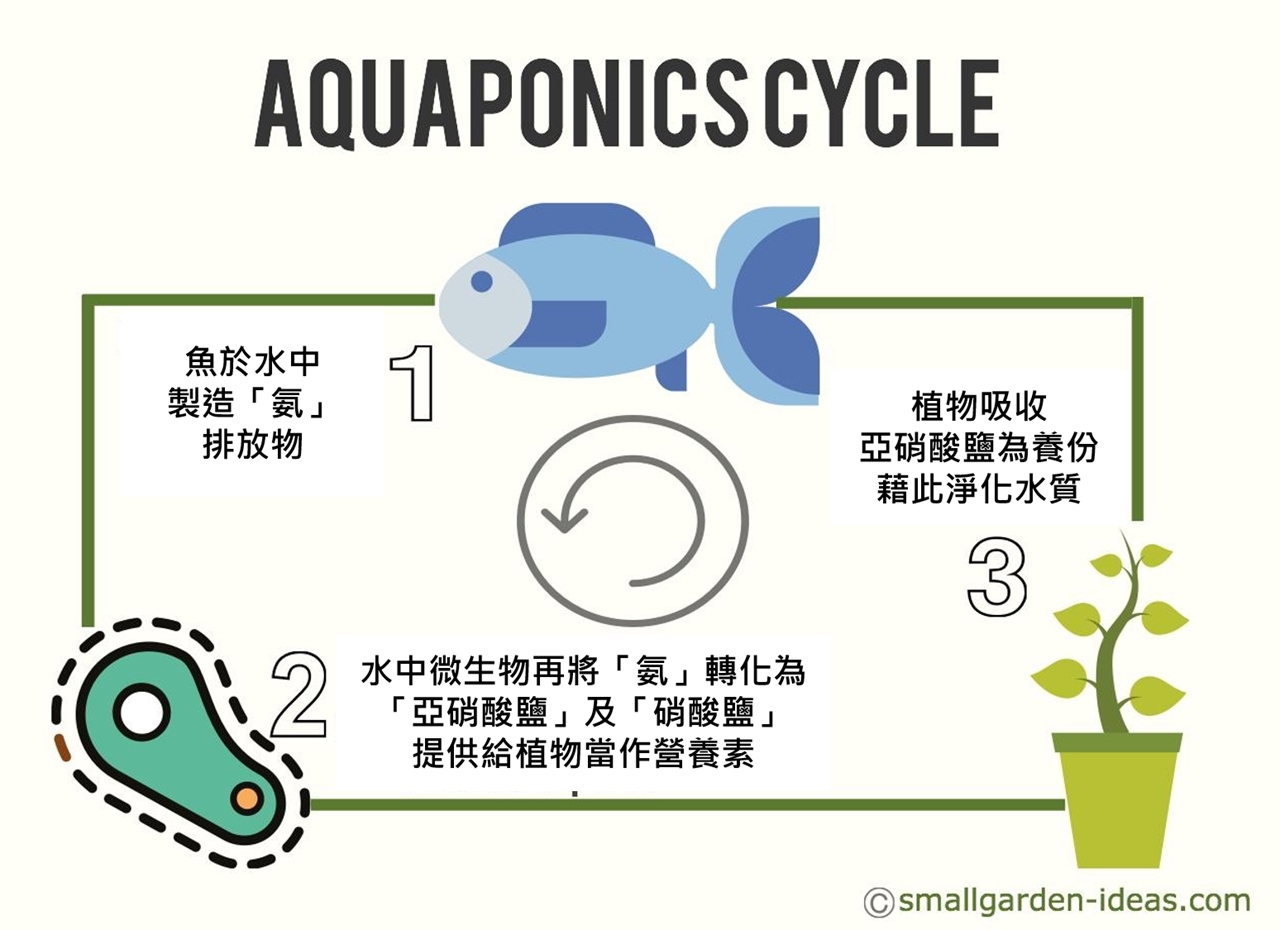 其實魚類在水中的糞便會產生化學物質氨,若隨意排放會對土壤及河川造成巨大的汙染,但水中的硝化菌能將其分解成營養素提供給水生植物,而後蔬菜淨化完的水質又將回歸給魚群生活,這樣簡易的封閉性生態系統也讓身在都市的我們能藉此好好觀察整個生態系的奇妙運作。