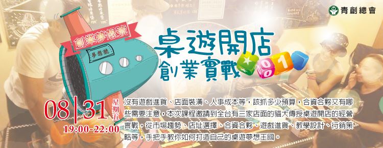 沒有條件限制,任何人都能從遊戲中發揮小心機,桌遊就是這麼好玩!根據統計,全台桌遊店的數量,6年之間成長將近8倍,現在進場開桌遊店還有機會嗎?遊戲進貨、店面裝潢、人事成本等,該抓多少預算,合資合夥又有哪些需要注意,本次課程邀請到全台有五家店面的貓大傳授桌遊開店的經營實戰,從市場趨勢、店址選擇、合資合夥、遊戲進貨、教學設計、行銷策略等,手把手教你如何打造自己的桌遊夢想王國。