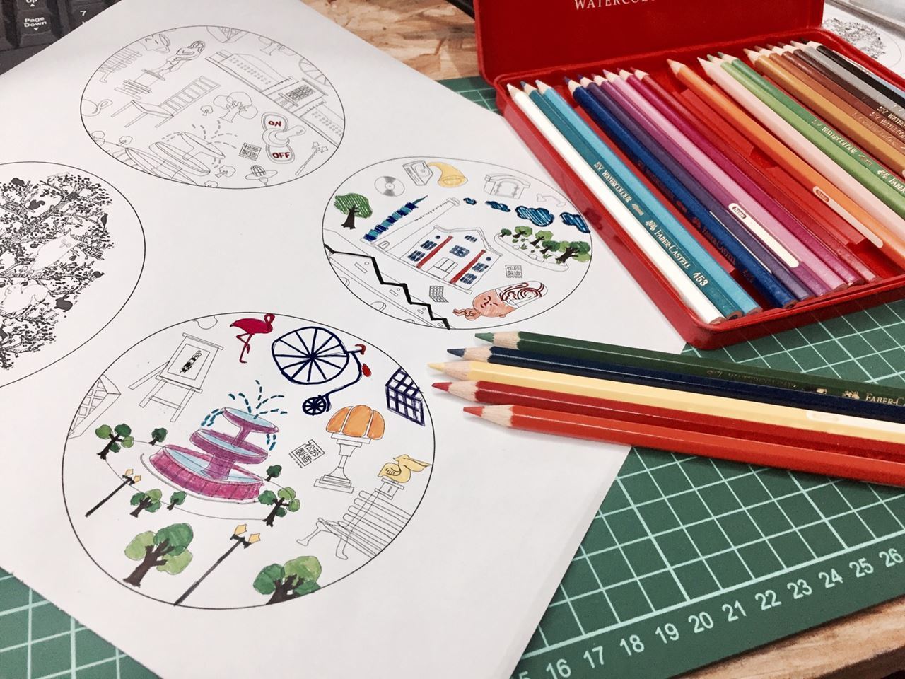 現場運用手繪技法將不同的色彩與意象做轉化,藉由彩繪松菸視覺設計,透過「UV硬化平面印刷機」轉印至陶土吸水杯墊上,好適合親子共同參與體驗創意實作,激發創意手作樂趣。